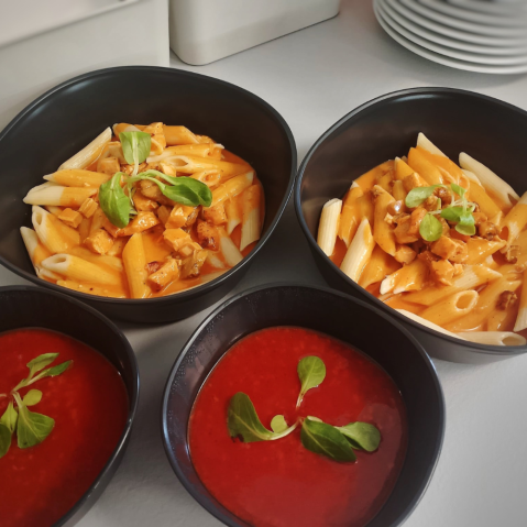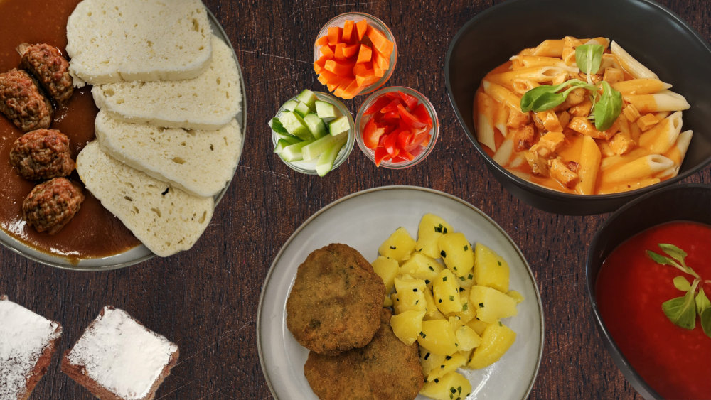 Součástí každého oběda je polévka. Na přání lze oběd doplnit také o nakrájené ovoce či zeleninu a domácí buchtu. Ukázku konkrétních jídel a realizací najdete také v naší nabídce pro příměstské tábory. Samozřejmostí jsou také vegetariánské či veganské varianty po předchozí domluvě.