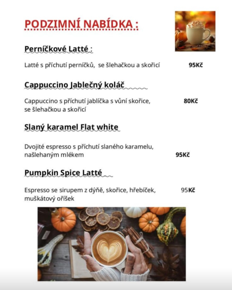 Podzim je u nás ve znamení vůní skořice, dýně a sladkých překvapení. V Bistru Teamcaffe jsme pro Vás připravili novou podzimní nabídku nápojů a dezertů, která krásně zahřeje i zpříjemní sychravé dny.